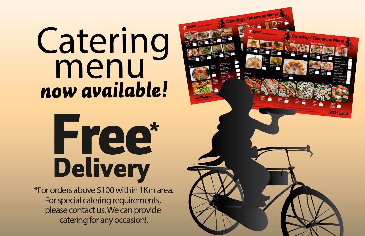 CATERING PDF Catering Menu SHARE THIS PAGE Share this Post FOR BOOKING CALL 9231 5544 Lunch: Mon to Fri Dinner: Mon to Sat B1 , 7 Hunter Street Sydney 2000 info@kansai.com.au FOLLOW US