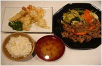 teriyaki chicken or beef, prawn & vegetable tempura, miso soup and rice
