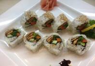 inari, seaweed salad, cucumber and carrot, healthy choice with no mayonnaise